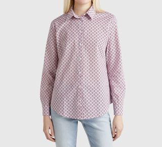 Ακραία προσφορά!!! Μακρυμάνικο πουκάμισο Benetton από ελαφρύ βαμβακερό ύφασμα, ιδανικό για άνεση όλη μέρα. Διαθέτει κλασικό γιακά, μπροστινό κούμπωμα και τύπωμα με σχέδια σε όλο το ένδυμα, προσφέροντας μια κομψή αλλά και καθημερινή επιλογή. Ένα κομμάτι που συνδυάζει στυλ και πρακτικότητα, ταιριάζοντας εύκολα σε πολλές περιστάσεις.