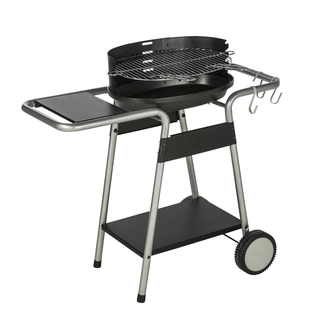 Η ψησταριά κάρβουνου-τρόλεϋ NATERIAL Darius είναι ιδανική για να απολαύσετε πλούσια γεύματα στον κήπο ή τη βεράντα σας. Με διαστάσεις 91 x 52 x 84 cm, προσφέρει άφθονο χώρο για να ψήσετε νόστιμα φαγητά για έως 6 άτομα. Διαθέτει πλέγμα για ρύθμιση ύψους ψησίματος, πλαϊνό ράφι για εύκολη πρόσβαση στα σκεύη και χαμηλότερο ράφι για την αποθήκευση κάρβουνων. Η μαντεμένια εστία της εξασφαλίζει αντοχή και μακροχρόνια χρήση. Είναι εύκολη στον καθαρισμό και συνιστάται να προστατεύεται με κάλυμμα (δεν περιλαμβάνεται) για να διατηρείται σε καλή κατάσταση. Ιδανική επιλογή για τους λάτρεις του μπάρμπεκιου.