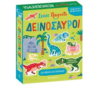 Δημιουργικό σετ με θέμα τους δεινόσαυρους που συνδυάζει παιχνίδι και γνώση. Περιλαμβάνει διπλής όψης ταμπλό-παζλ, 25 φιγούρες με βάση και βιβλίο 32 σελίδων γεμάτο πληροφορίες. Στήσε το σκηνικό, παίξε με τις φιγούρες και ανακάλυψε τον κόσμο των δεινοσαύρων μέσα από το βιβλίο. Μια ωραία επιλογή για παιδιά που αγαπούν την εξερεύνηση και τη φαντασία.